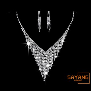 Ready Shiny Rhinestone Luxury Wedding Bridal Jewelry Set Women Necklace Earring Set Shopee Indonesia