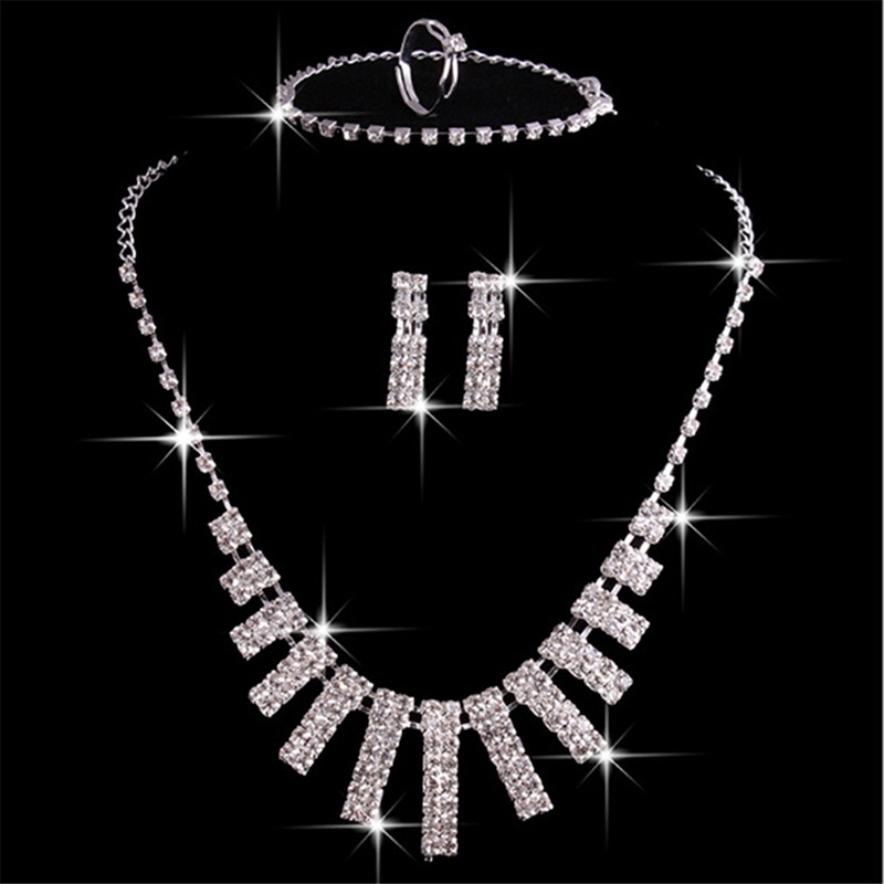4 Pcs Mewah Pernikahan Perhiasan Set Untuk Pengantin Wanita Kalung Gelang Cincin Anting Anting Set Tali Elastis Kristal Perhiasan Perhiasan Set Aliexpress