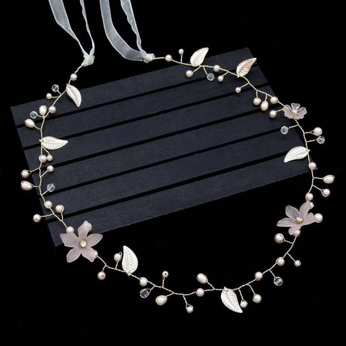 Jual With Ribbon Bridesmaid Tiara Leaf Wedding Jewelry Girls Bride Kab Malang Altha Go Shop Tokopedia