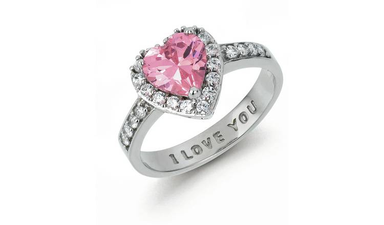 Buy Moon Back Sterling Silver Pink I Love You Ring O Womens Rings Argos